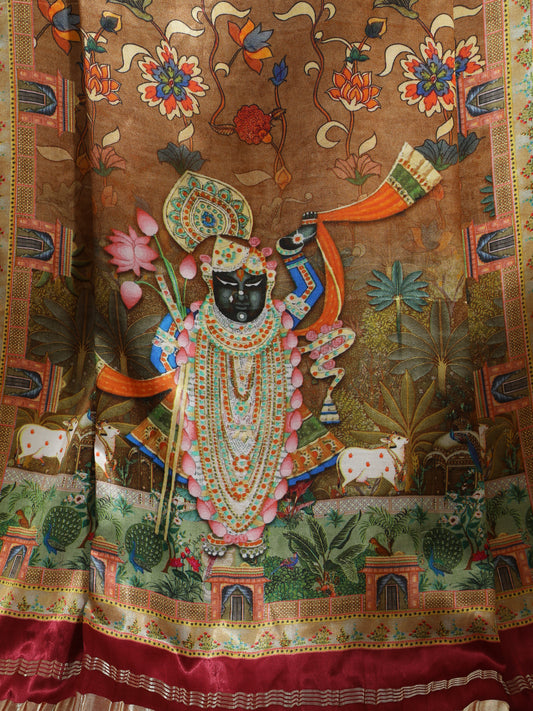 Regular price Rs. 2,599.00Regular priceUnit price / perRs. 2,899.00Sale price Rs. 2,599.00Beautiful Pichwai Shrinathiji Art with Kalamkari in Maroon Color DupattaSale