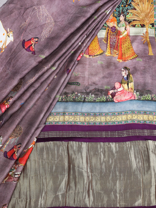 PURPLE PICHWAI RADHA KRISHNA PRINT SAREE WITH HATHI BANARASI PALLU SAREE