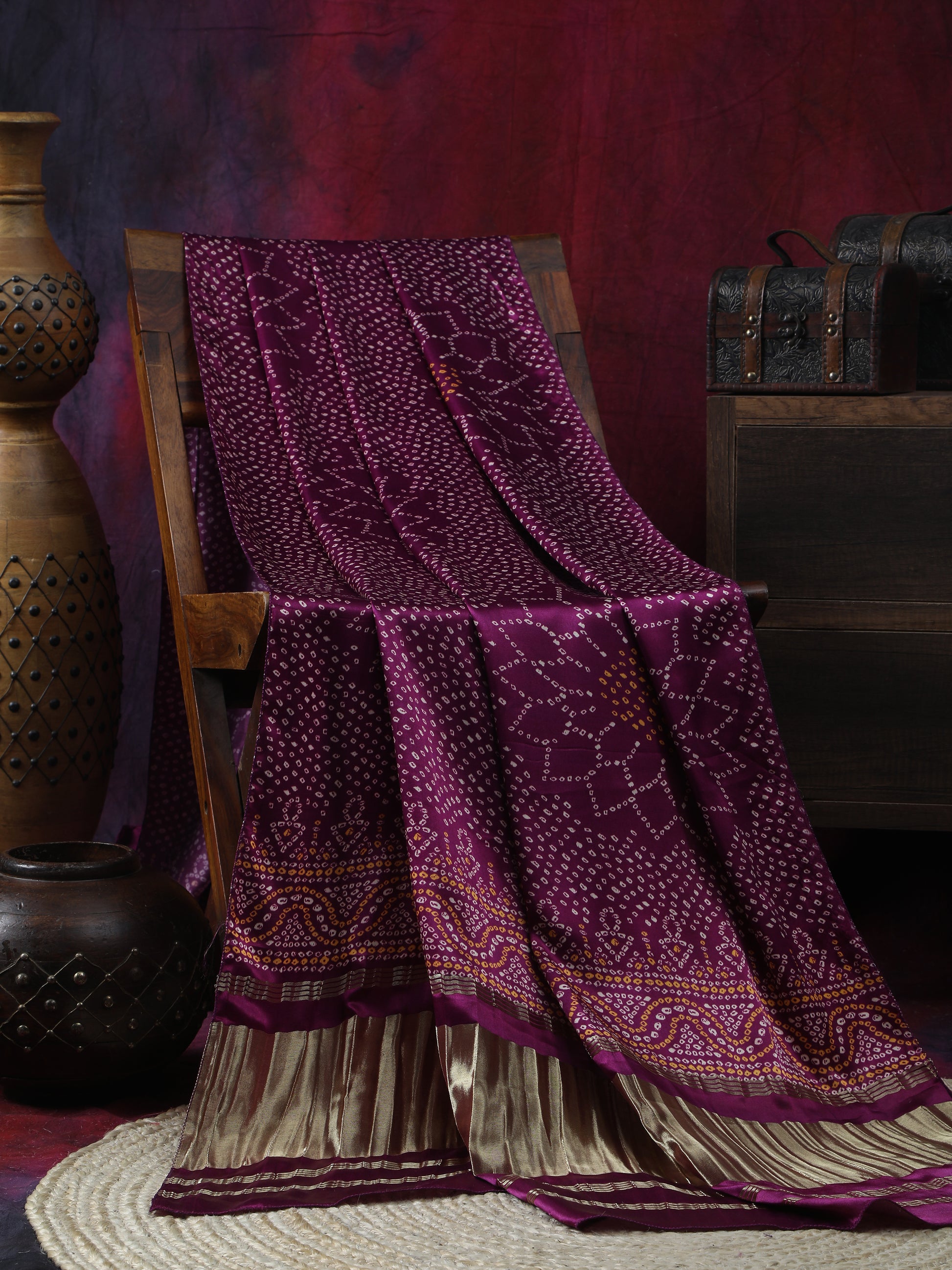 MAJANTA ( FALSA) SURYAMUKHI BANDHANI PRINT DUPATTA IN MODAL SILK