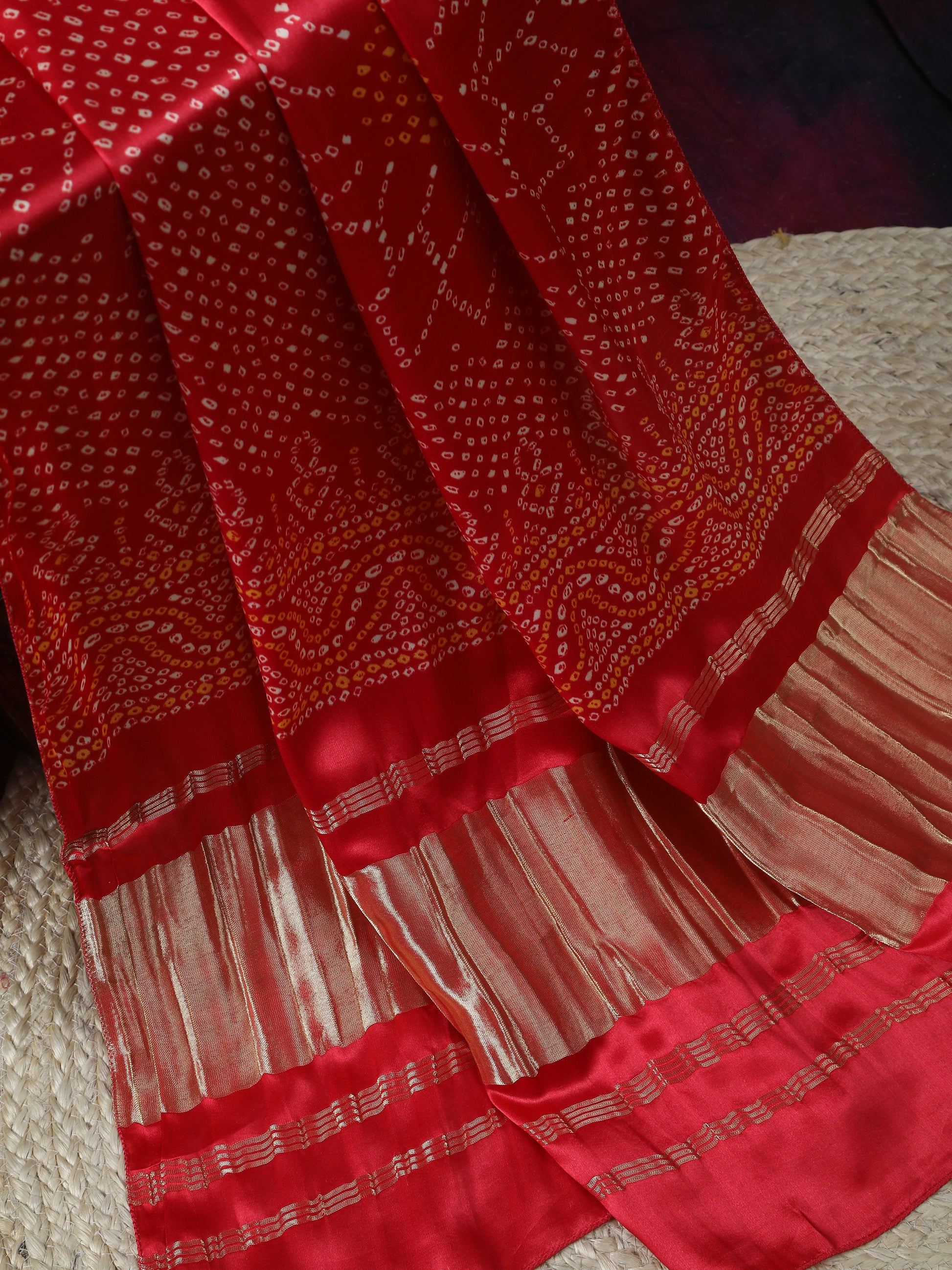RED SURYAMUKHI BANDHANI PRINT DUPATTA IN MODAL SILK