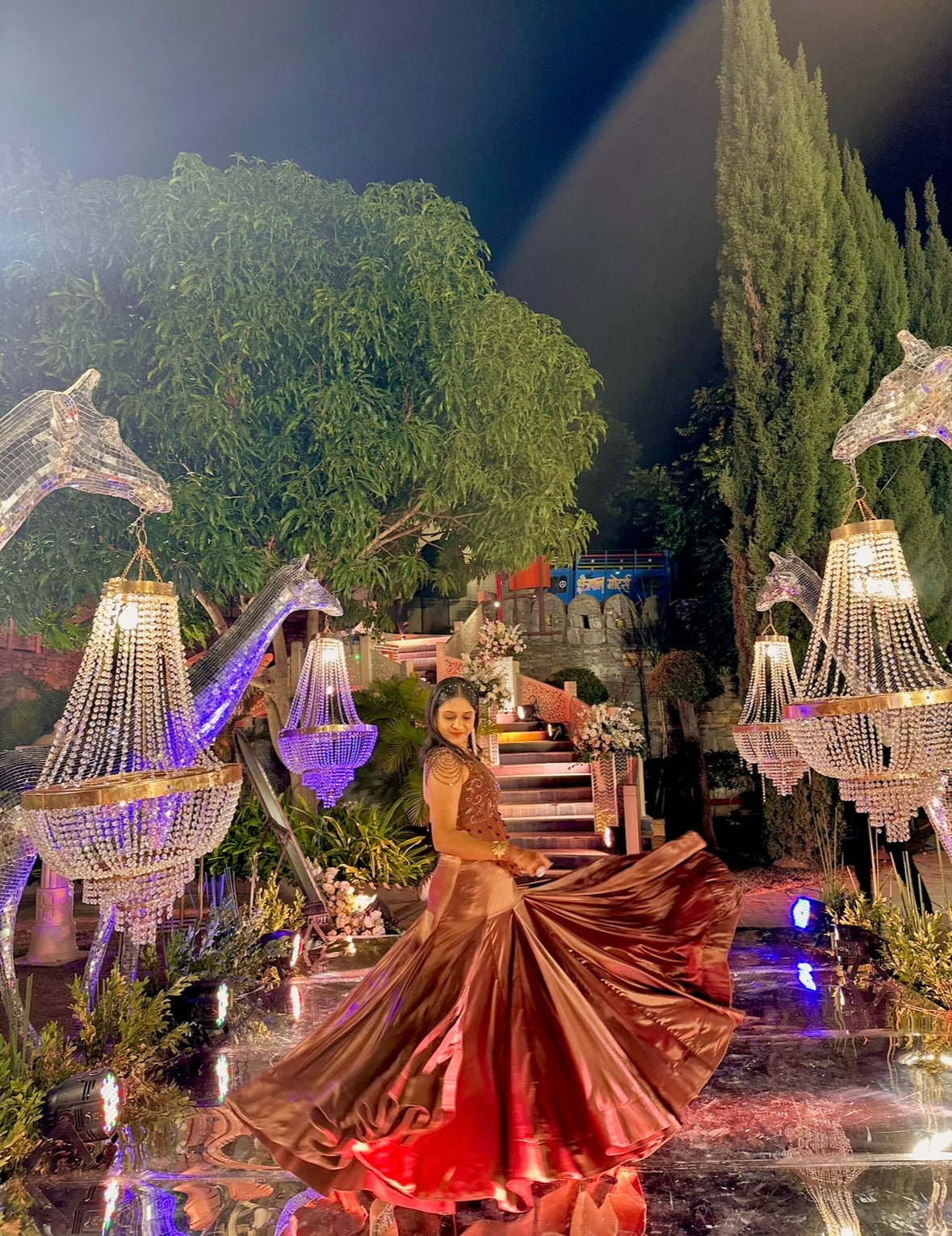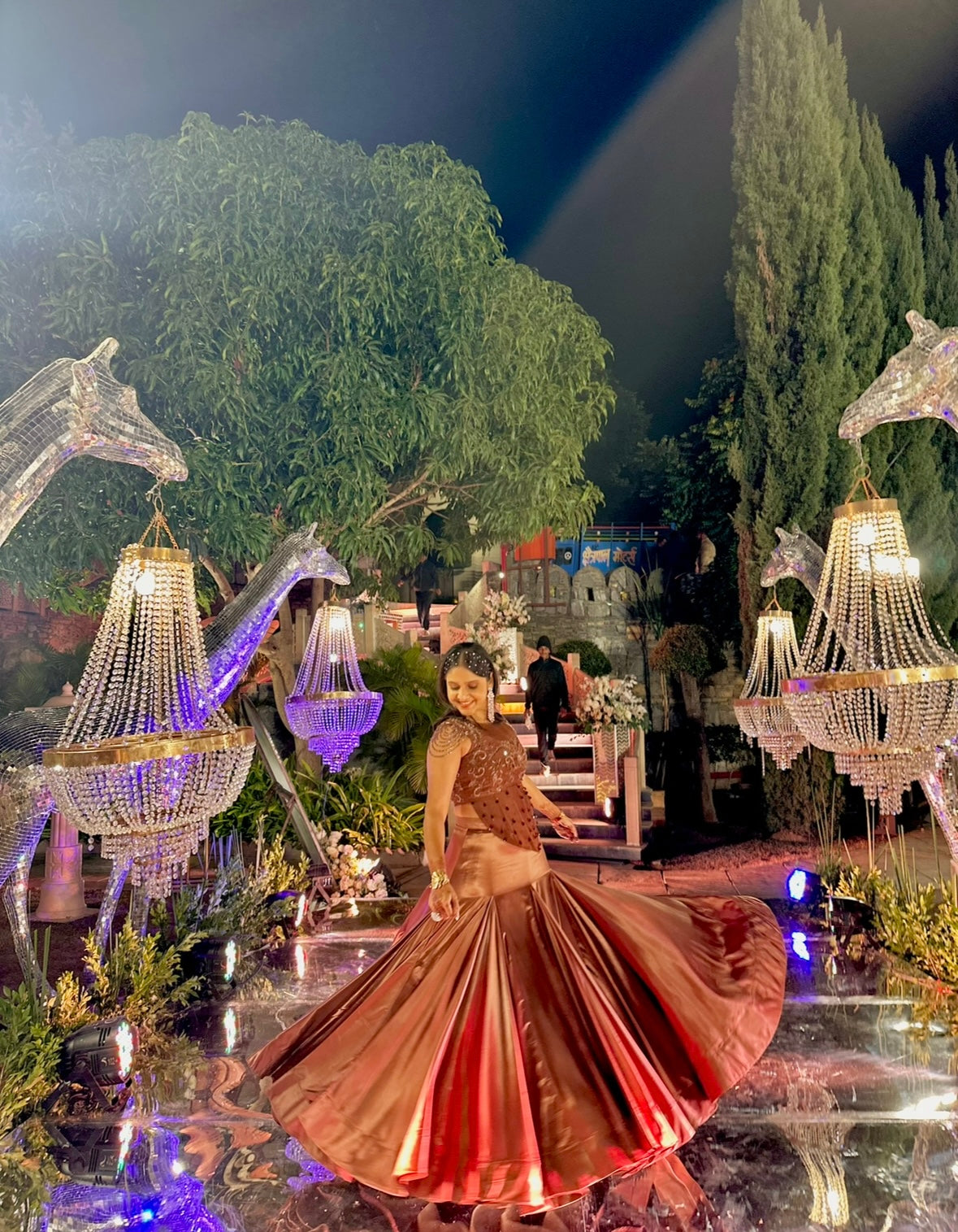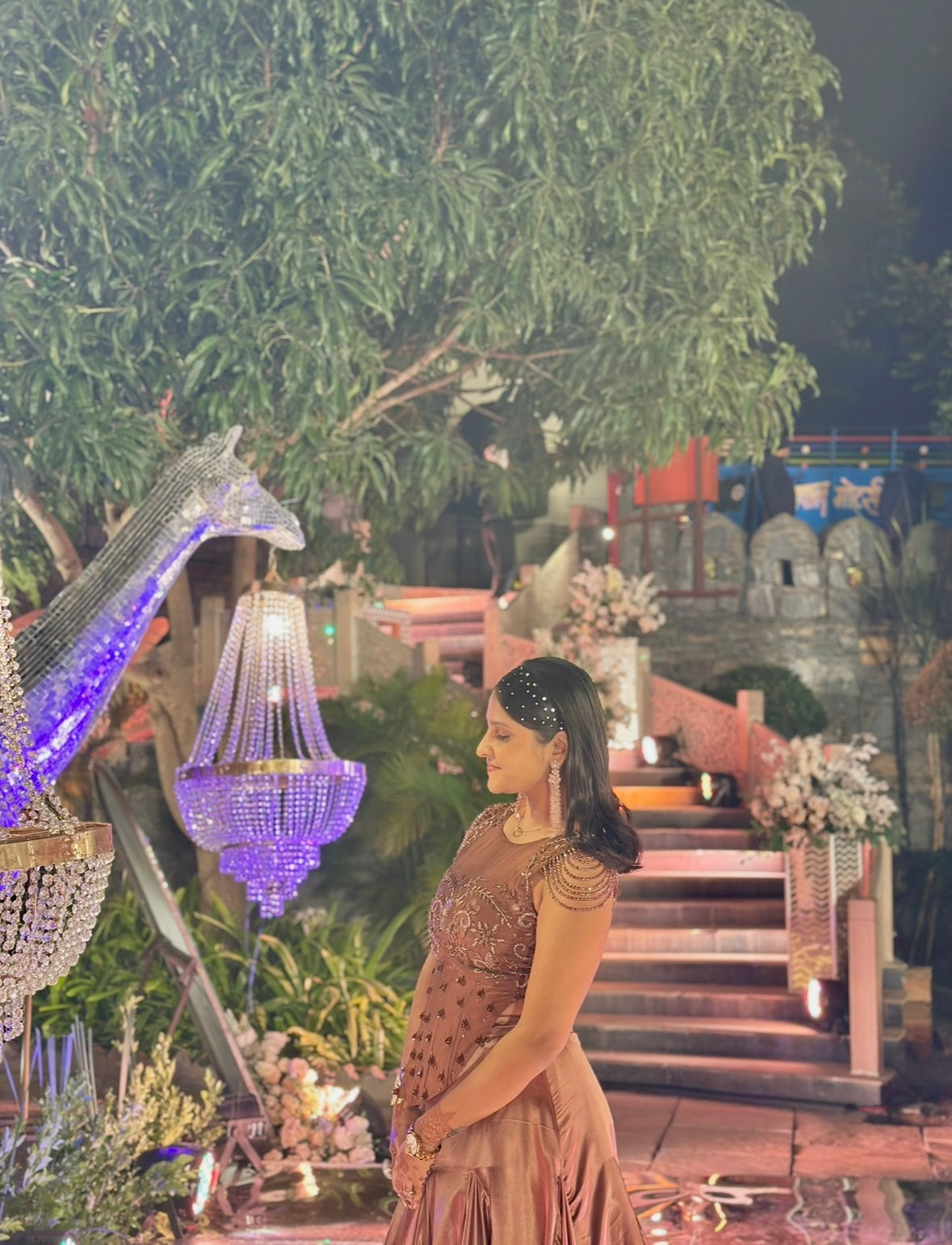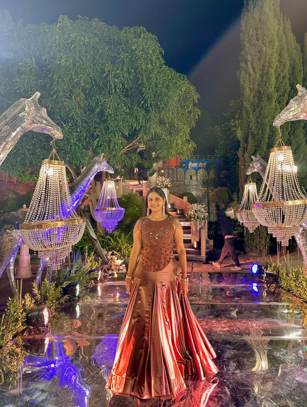Perfect for sangeets, receptions, and grand festivities, this outfit blends contemporary glamour with classic charm, making you the star of every moment.
