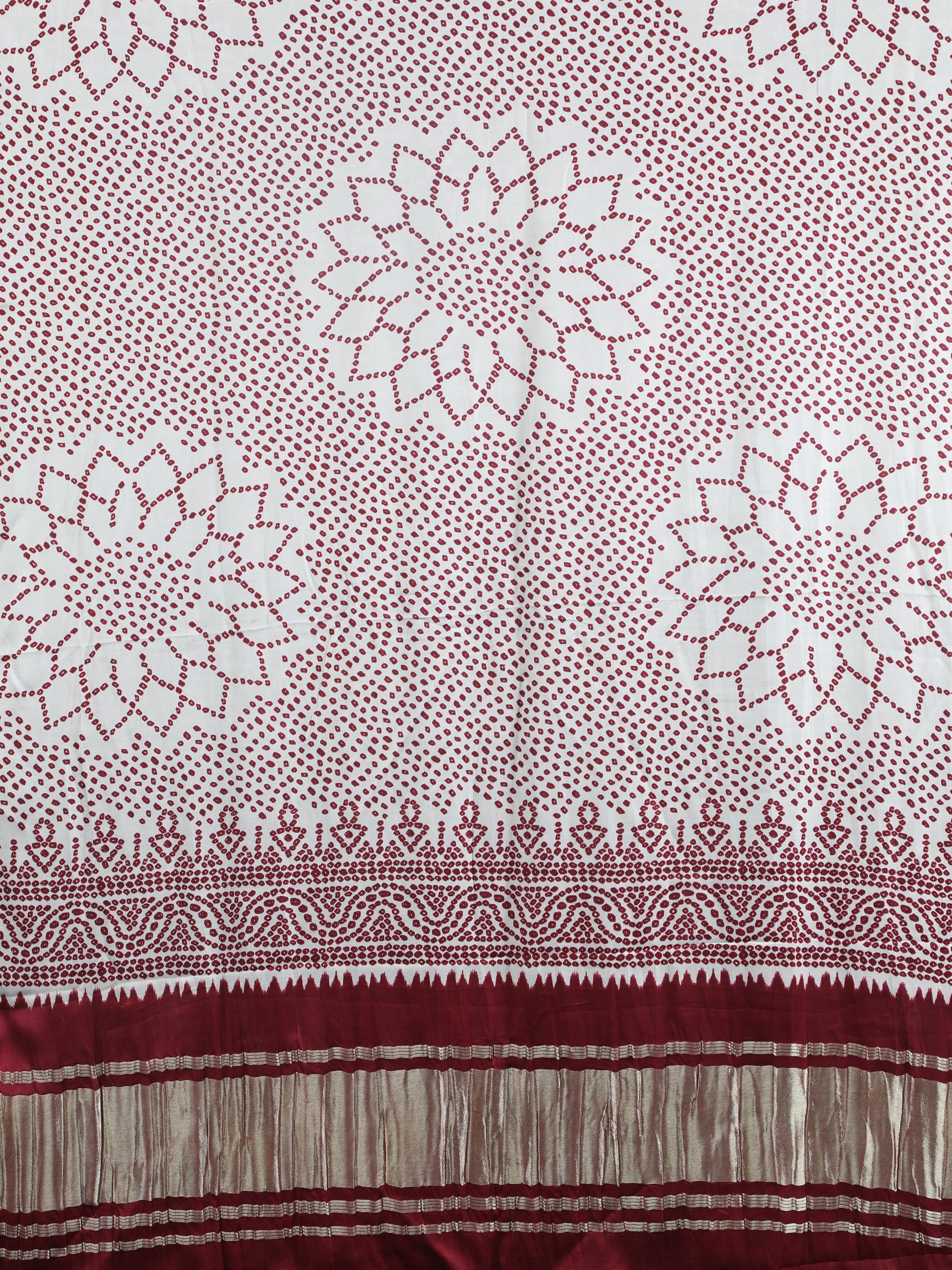 CREAM MAROON SURYAMUKHI BANDHANI PRINT DUPATTA IN MODAL SILK