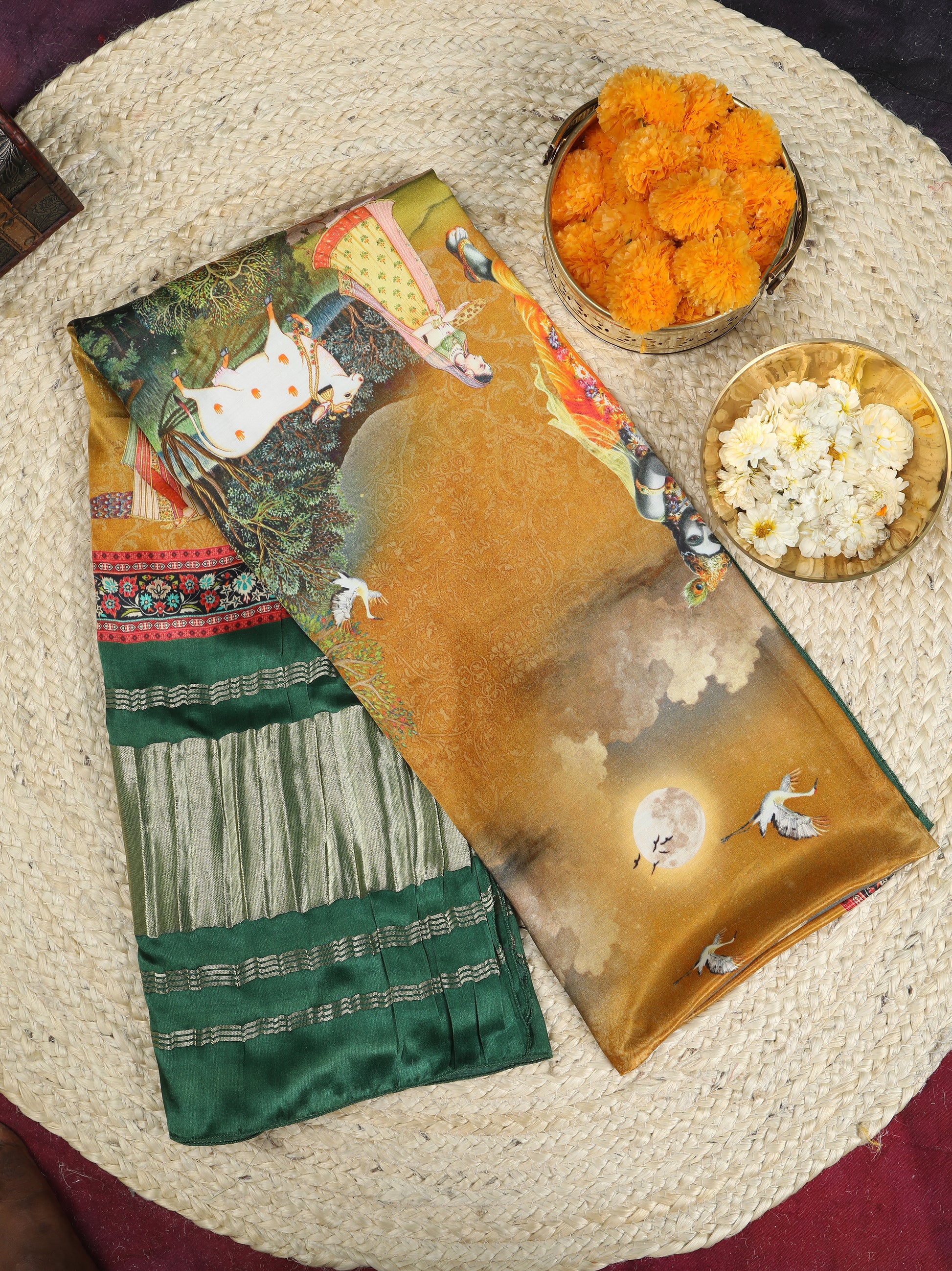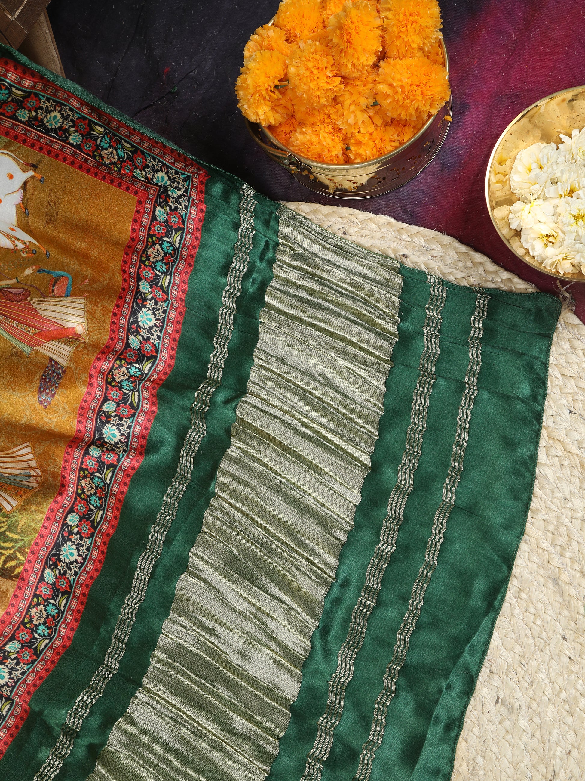 GREEN & YELLOW PICHWAI PRINT RADHA KRISHNA DUPATTA