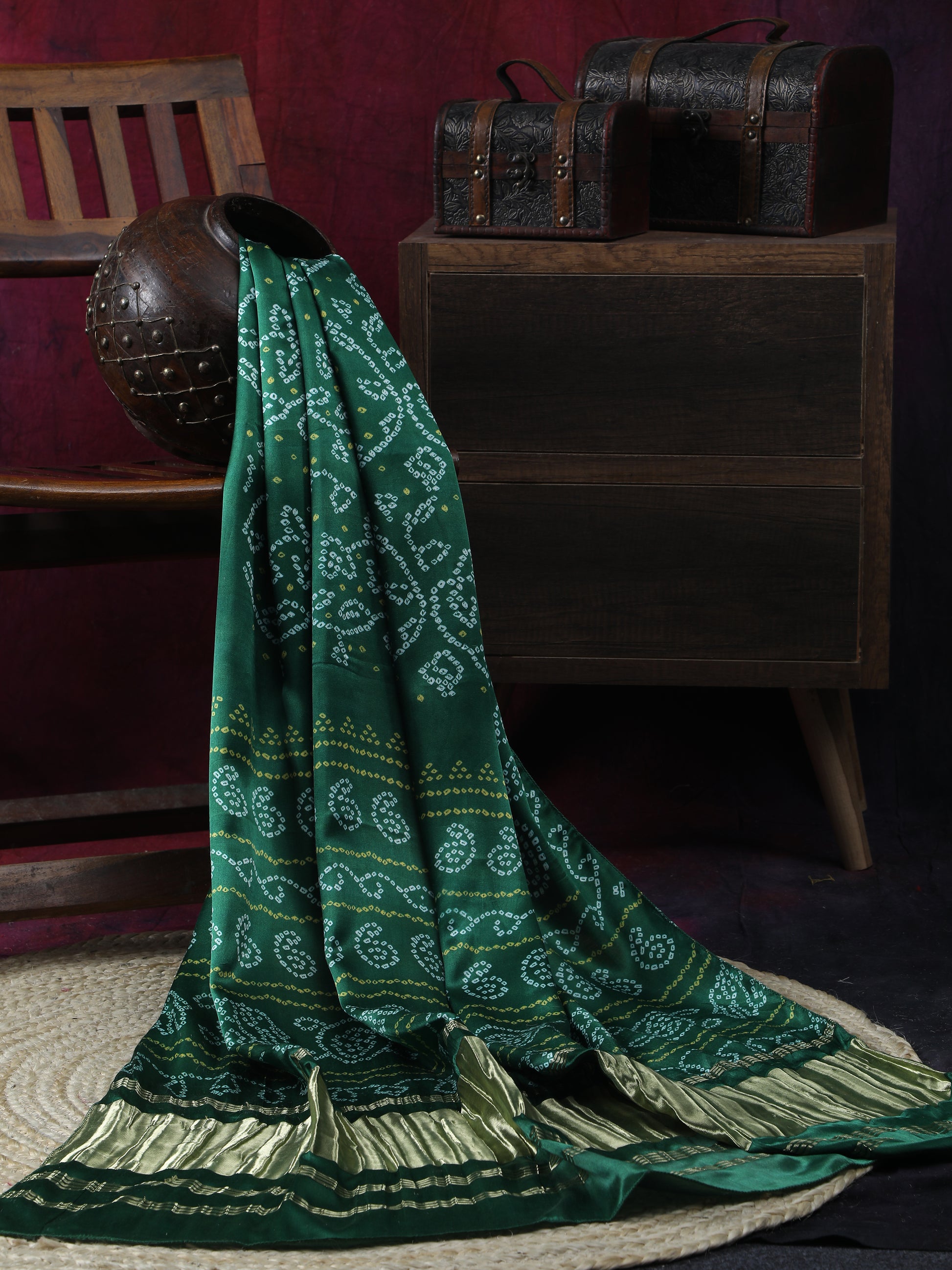• GREEN BANDHANI PRINT DUPATTA IN MODAL SILK