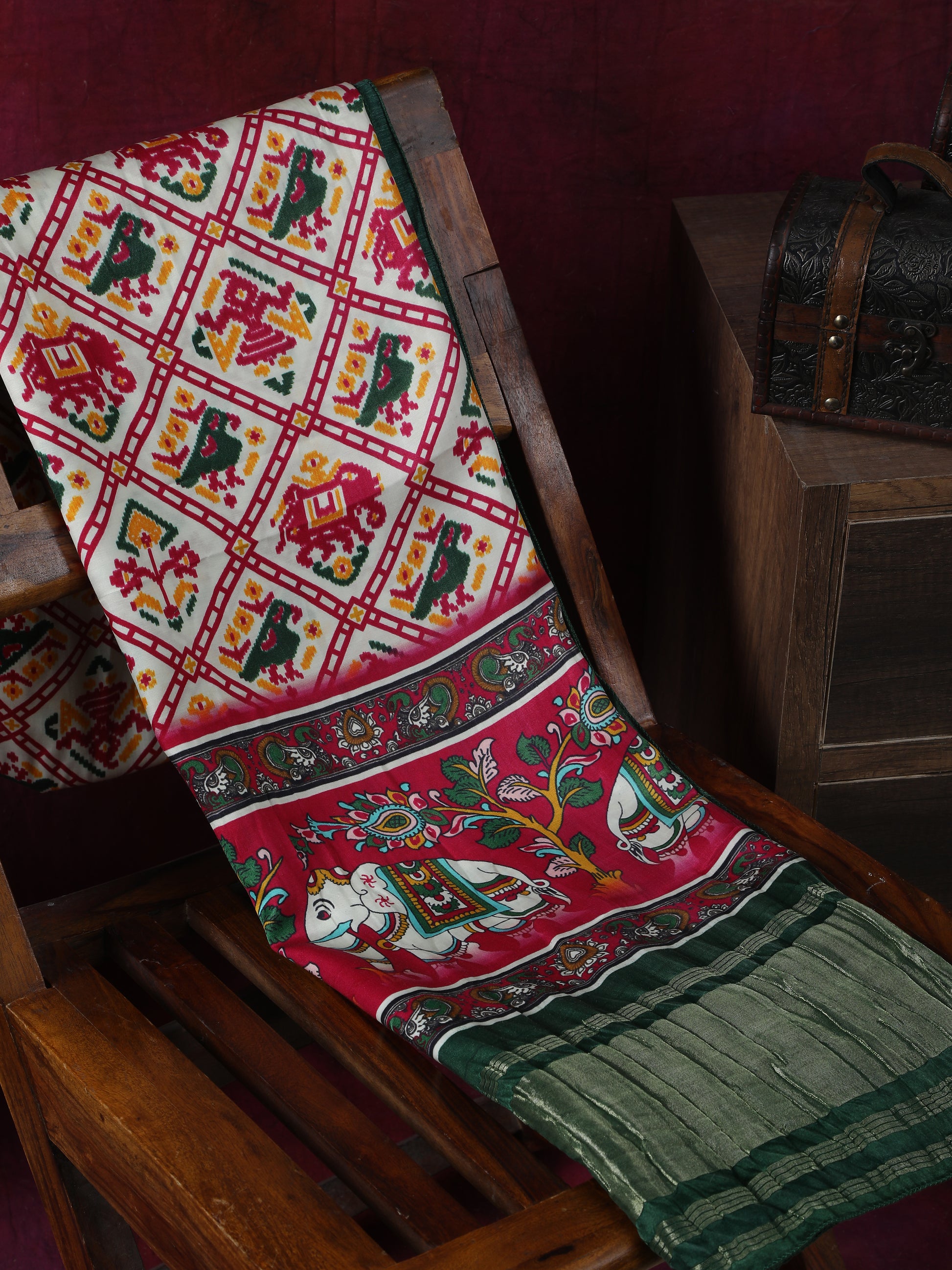 • GREEN & WHITE PATOLA PRINT DUPATTA IN MODAL SILK