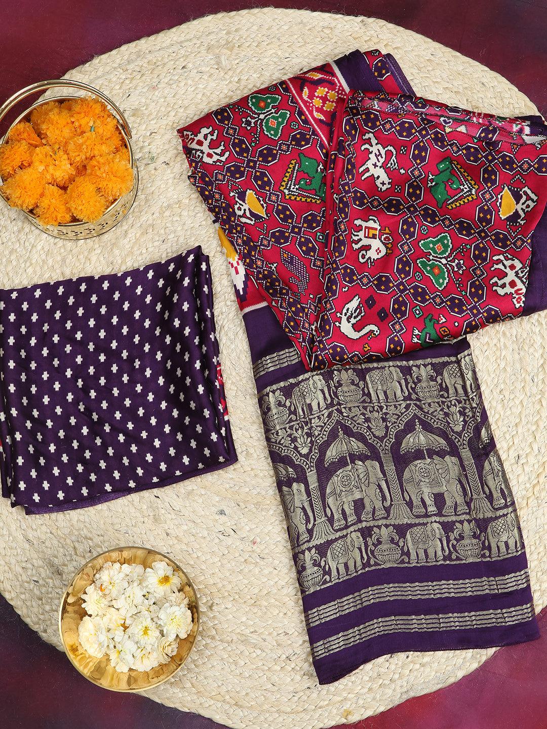 PURPLE & RANI IKKAT PATOLA SAREE WITH BANARASI PALLU BLOUSE (1 METER)