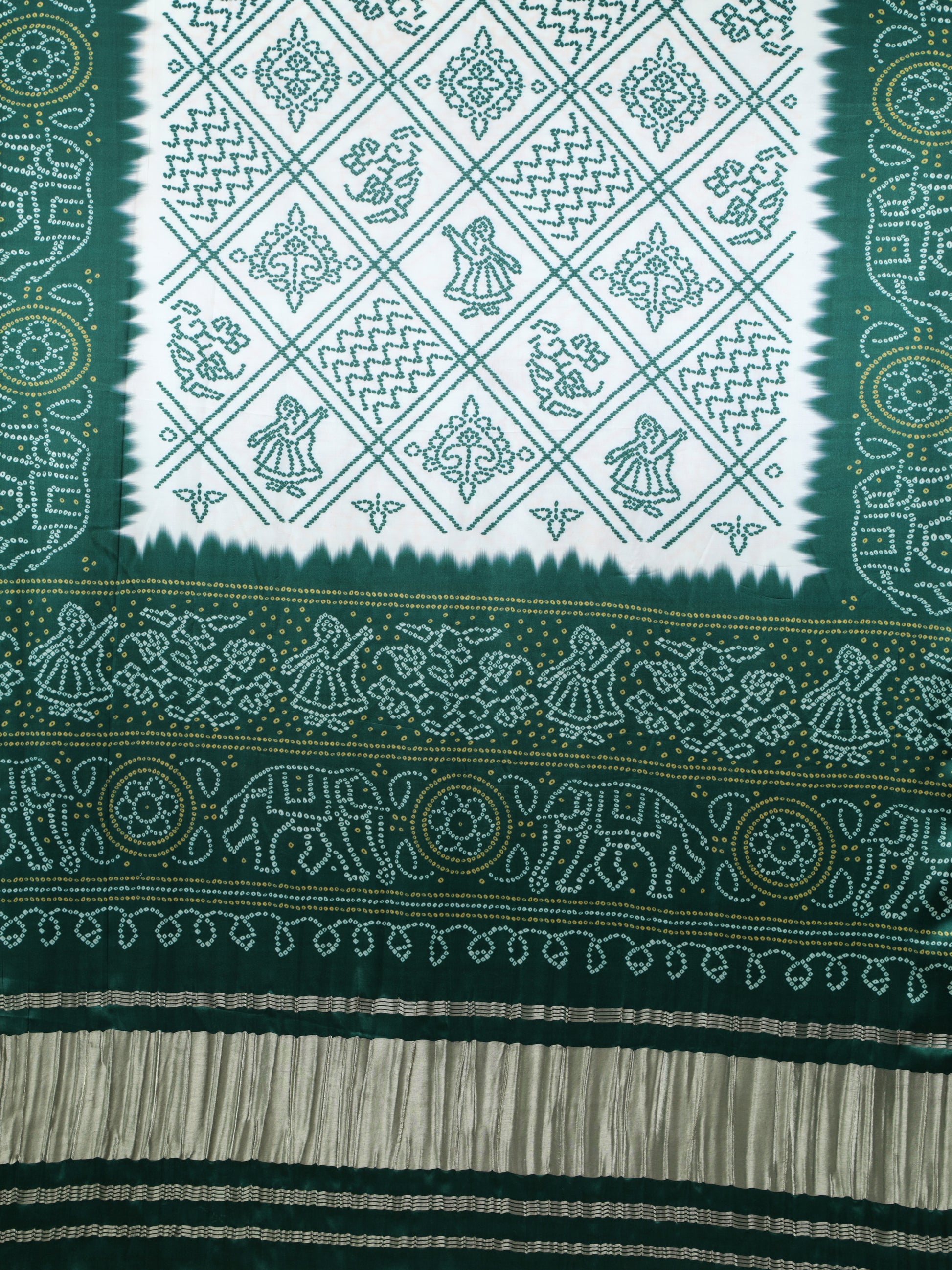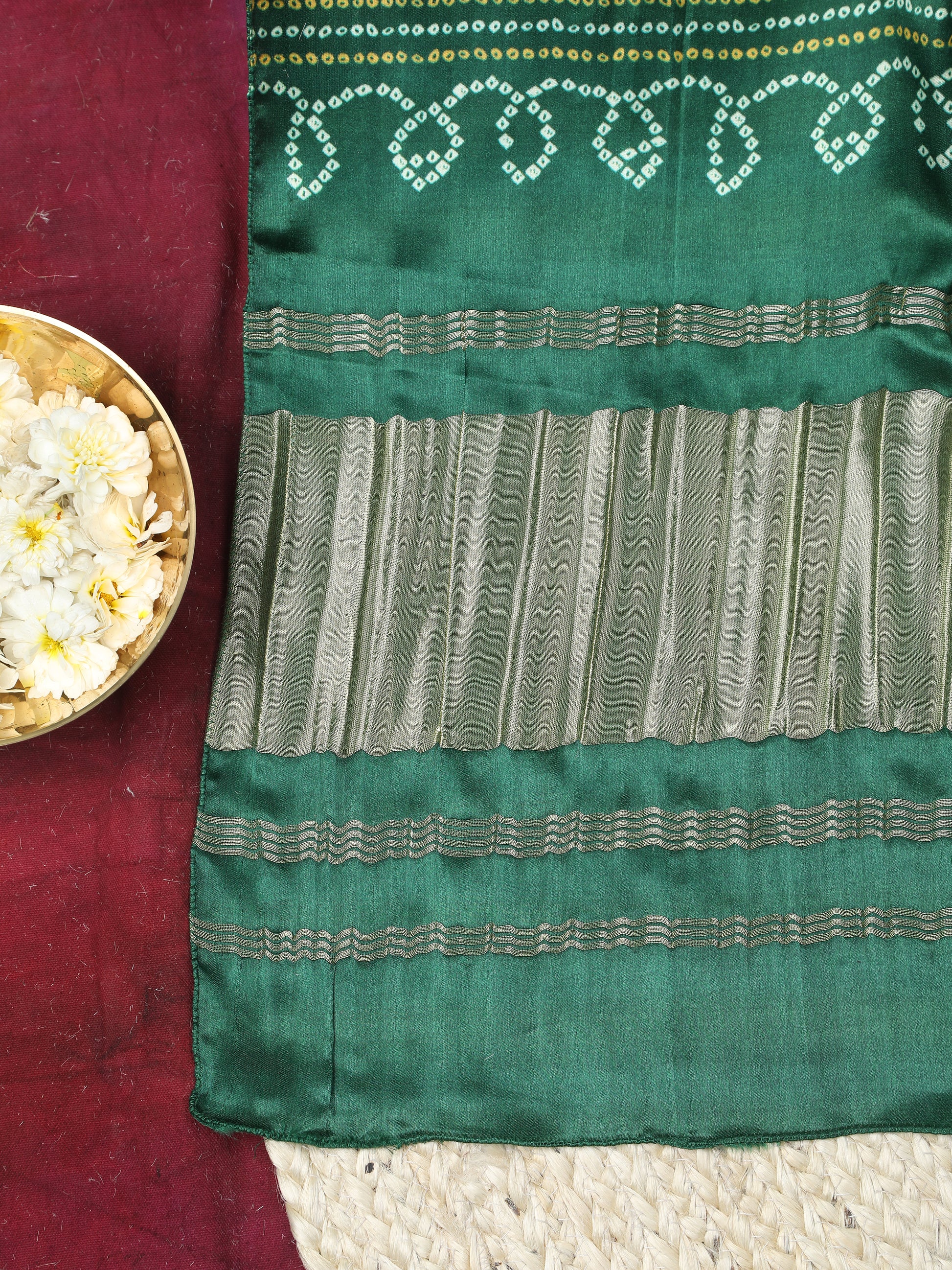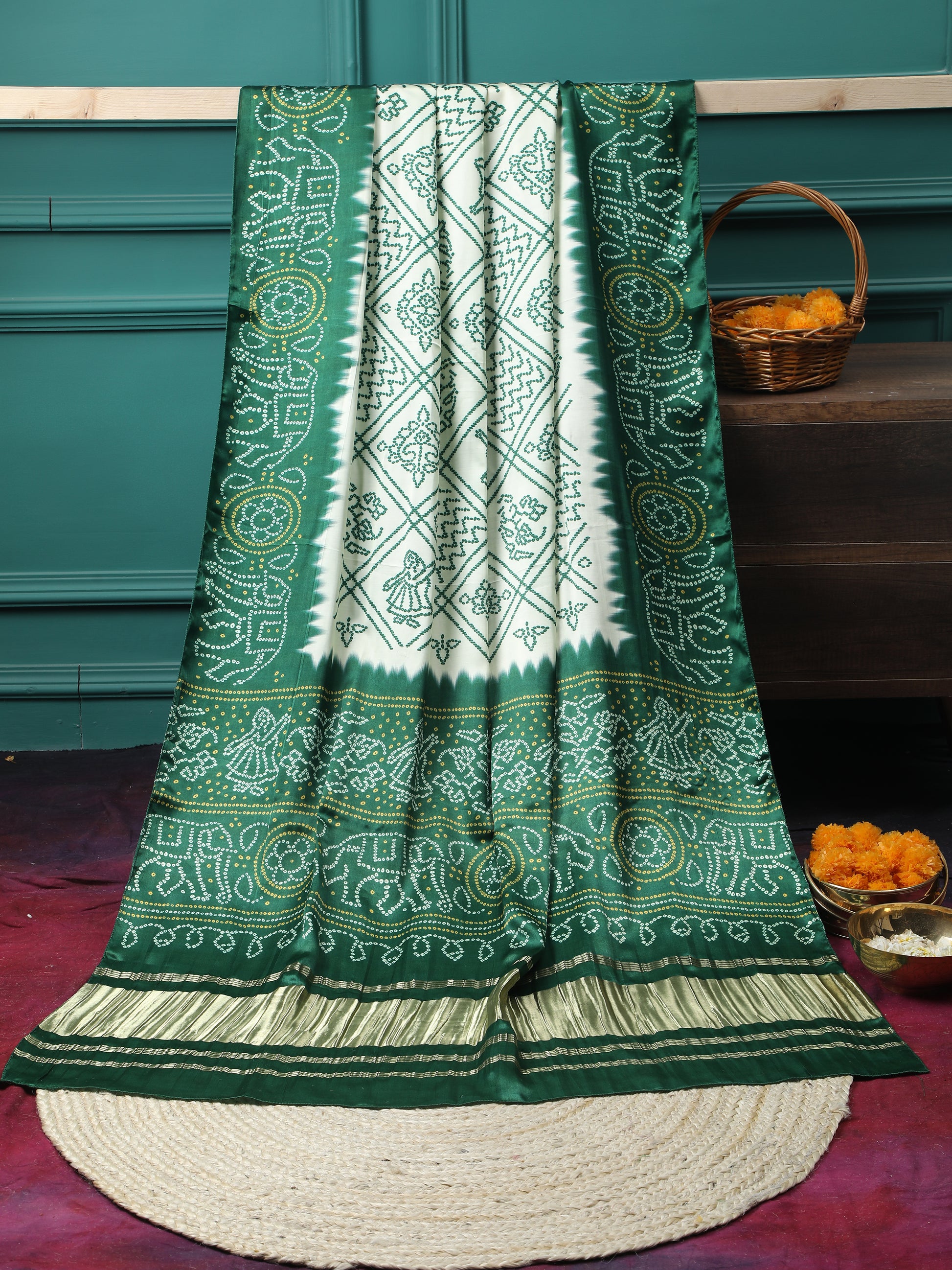 GREEN & CREAM BANDHANI PRINT DUPATTA IN MODAL SILK