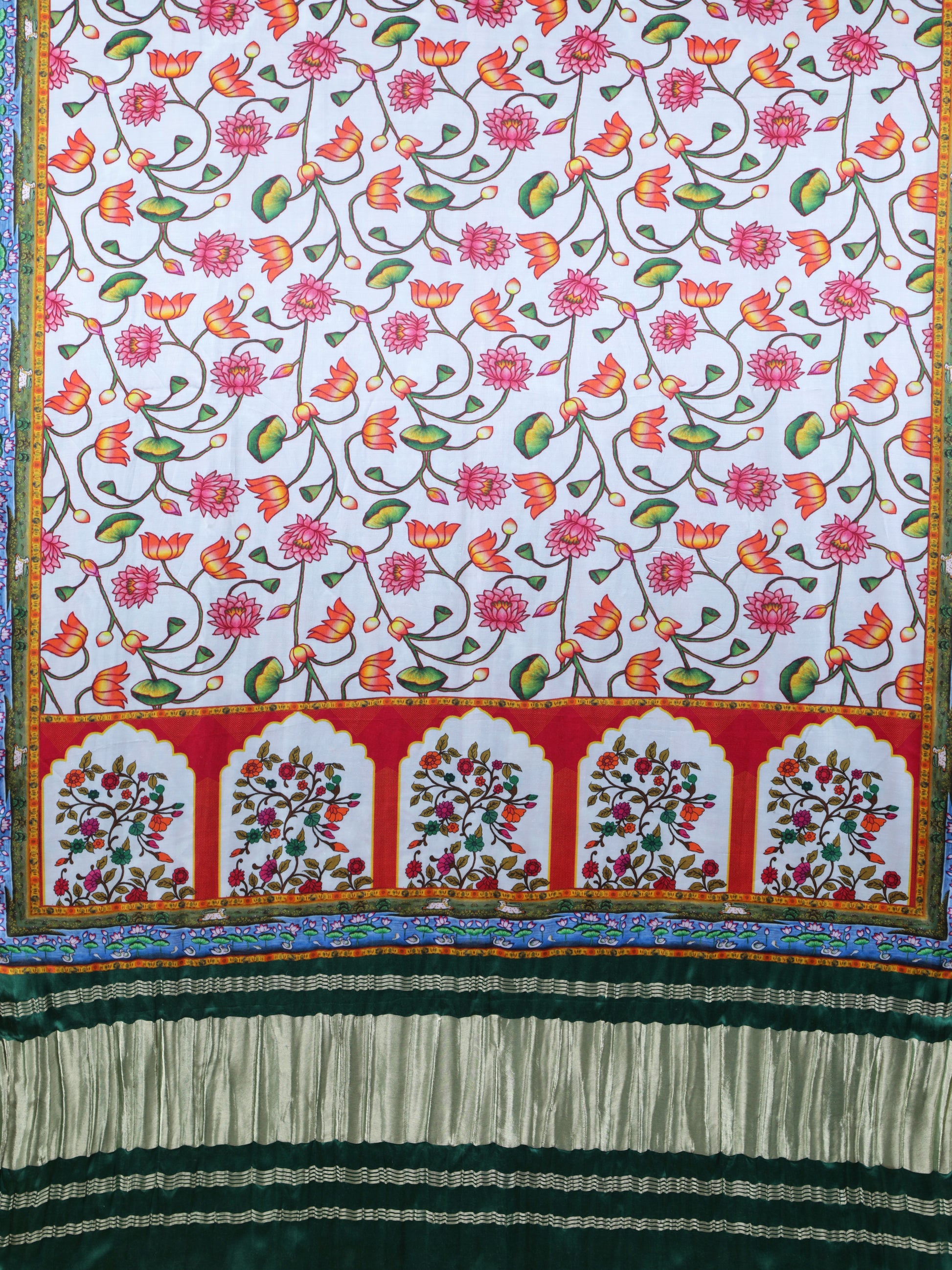 GREEN PICHWAI LOTUS PRINT DUPATTA IN MODAL SILK FABRIC