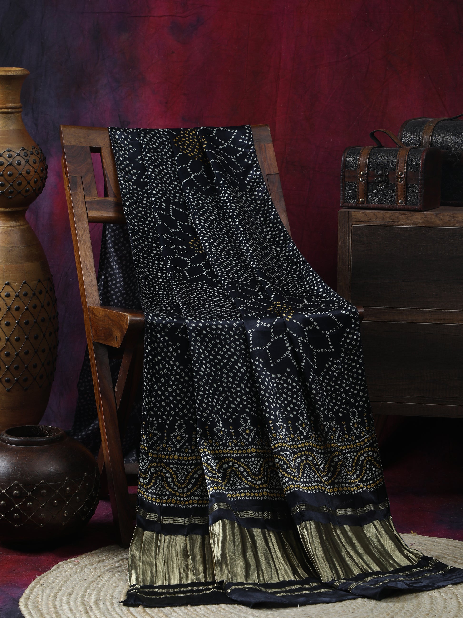 BLACK SURYAMUKHI BANDHANI PRINT DUPATTA IN MODAL SILK