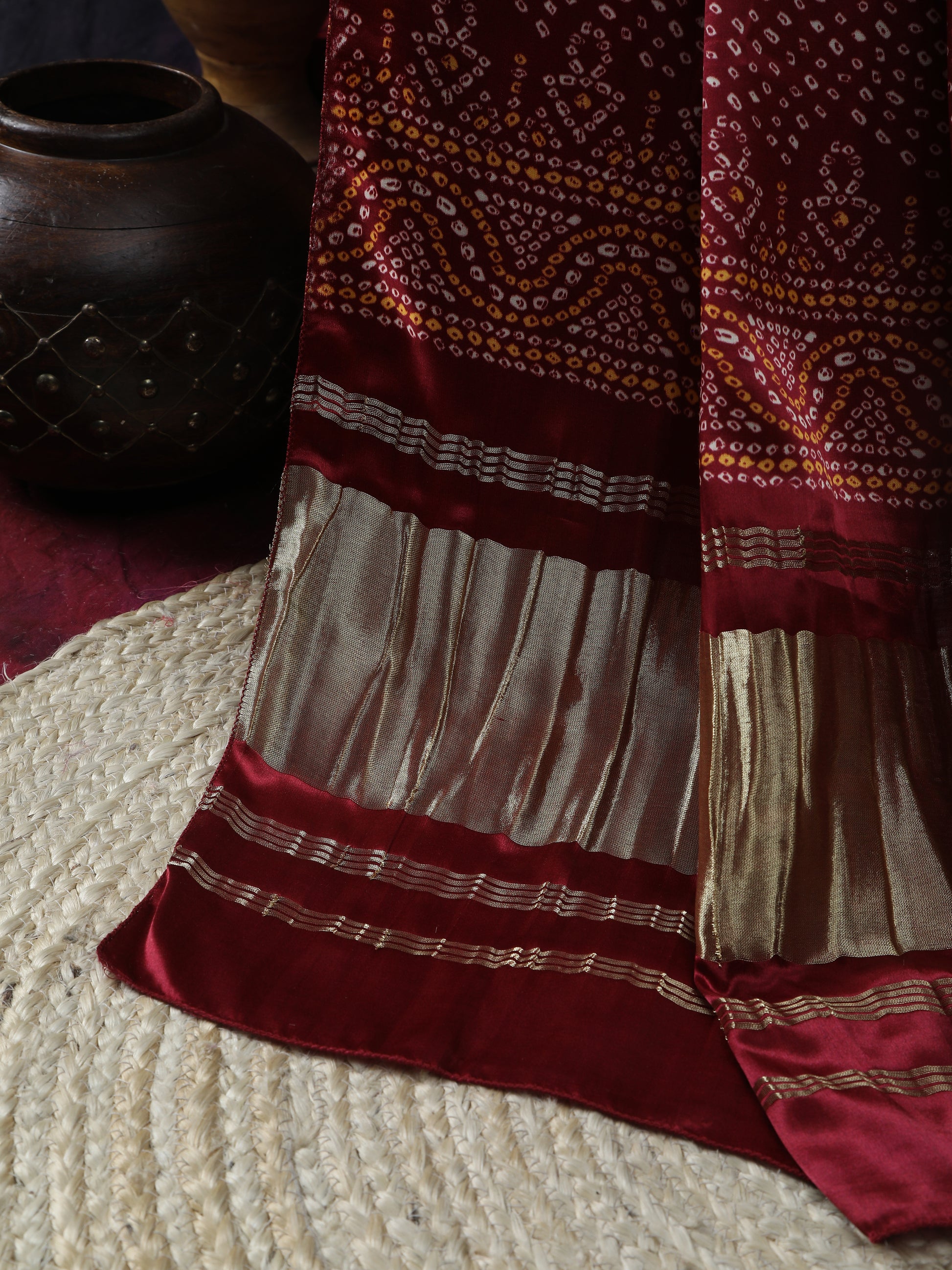 MAROON SURYAMUKHI BANDHANI PRINT DUPATTA IN MODAL SILK