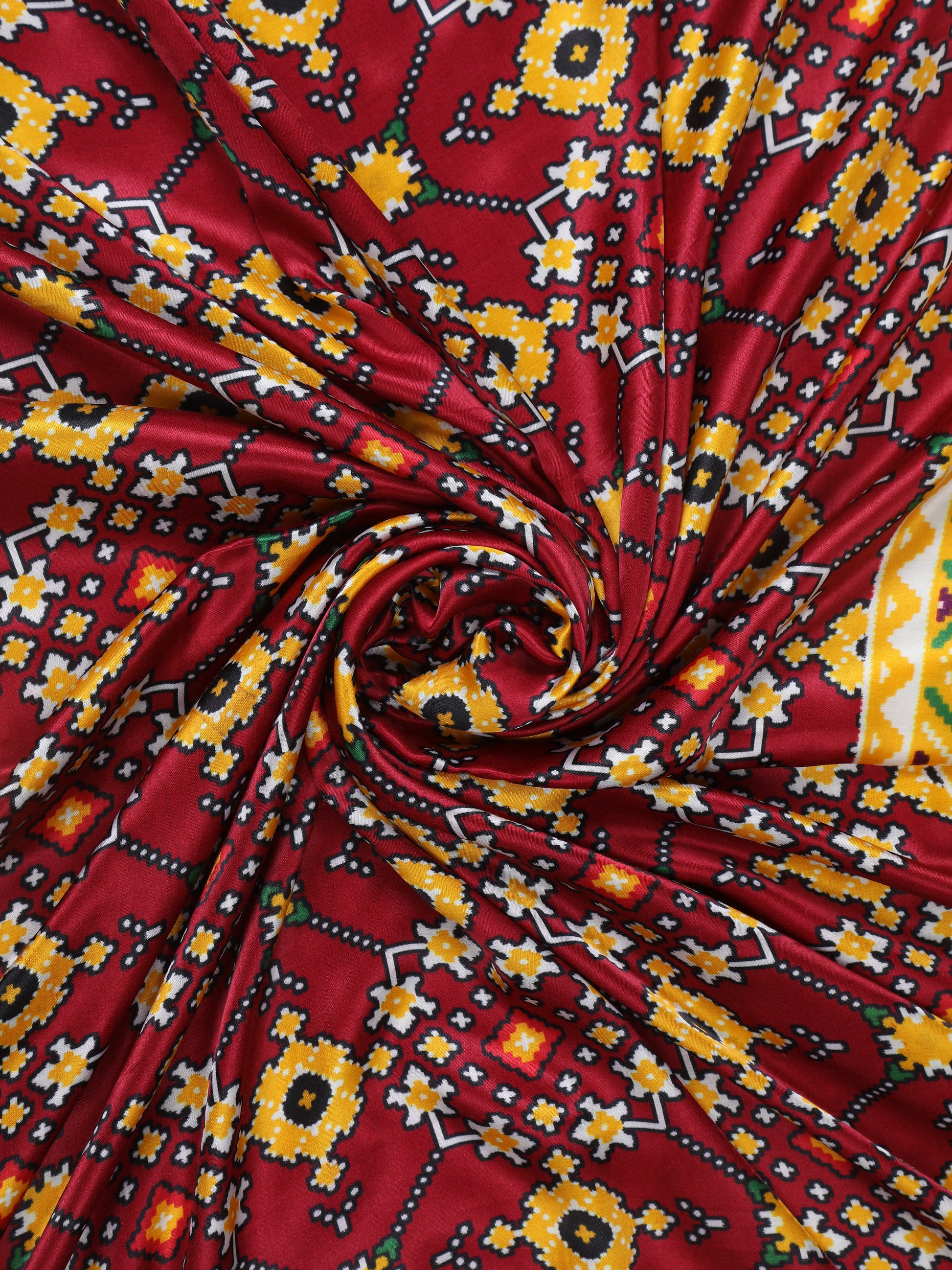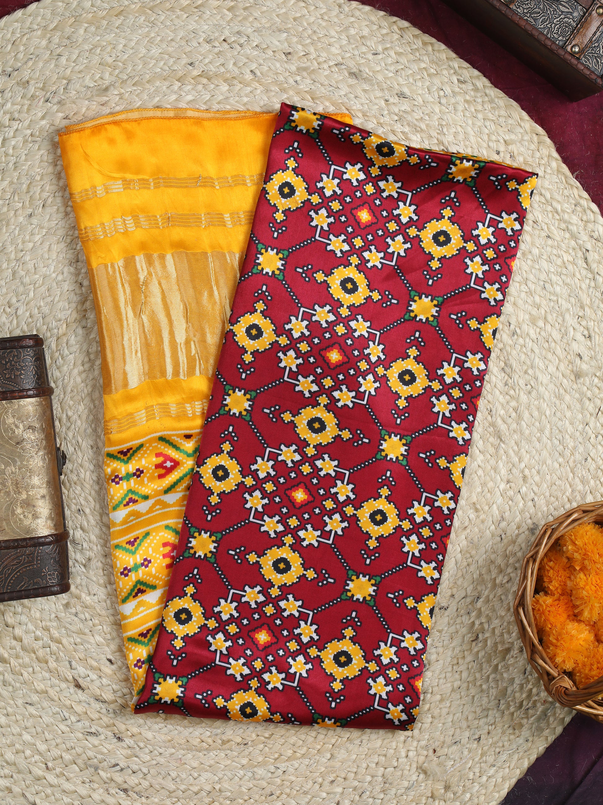 YELLOW & MAROON IKKAT PATOLA PRINT DUPATTA WITH TISSU PALLU